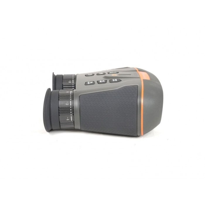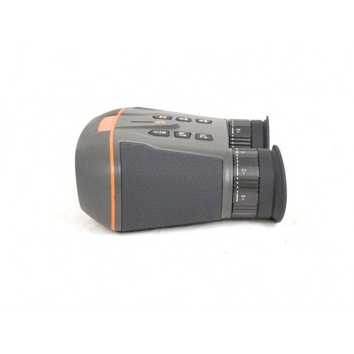 Оптический блок включает два объектива 5,58 мм F/1.2 с автоматическим ИК-фильтром. Пространственный угол поля зрения 58° эквивалентен охвату около 110 м на дистанции 100 м, что облегчает поиск и сопровождение целей. Цифровой зум регулируется в пределах 1×–12× и помогает увеличивать нужные фрагменты сцены без ухода из рабочего положения. В меню доступны базовые параметры съёмки (экспозиция, ISO и др.), а диоптрийные регулировки каждого окуляра (±3 дптр) и синхронизация дисплеев позволяют настроить картинку под индивидуальные особенности зрения.