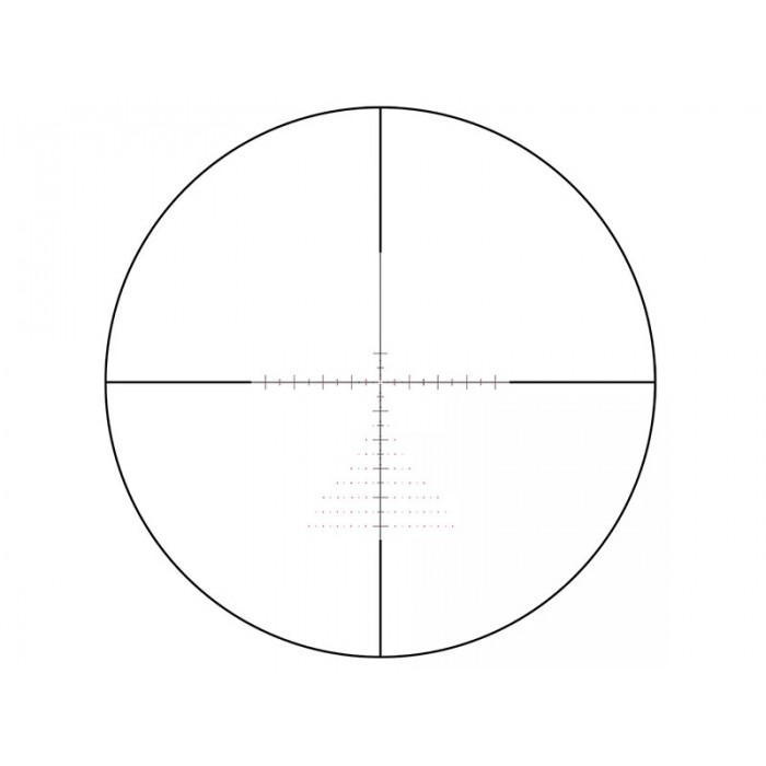 Прицельная сетка расположена во второй фокальной плоскости, поэтому её линии сохраняют привычную толщину на всём диапазоне увеличения и не «раздуваются» при приближении. Разметка по обеим осям и дополнительная «ёлочка» позволяют вводить поправки прямо в процессе стрельбы, не теряя темп. По техническим данным сетка указана как AM8-10x, а верность сетки — 10x, то есть корректность разметки привязана к определённой кратности, и это важно учитывать при работе по шкале. Диоптрийная коррекция в диапазоне от −3 до +2 помогает подстроить картинку под зрение и добиться максимально чёткого прицеливания.