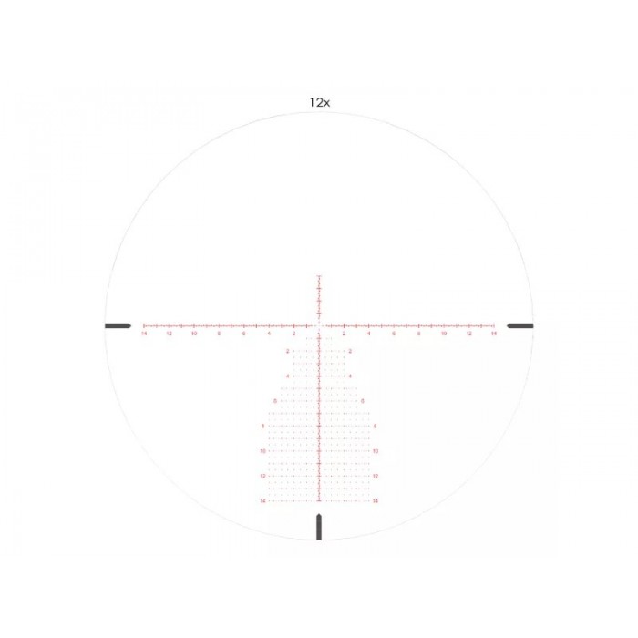 - Цена клика 0,1 MRAD (10 мм на 100 м) и диапазон поправок 34 MRAD по вертикали и 14,5 MRAD по горизонтали дают точную пристрелку и большой запас корректировок.