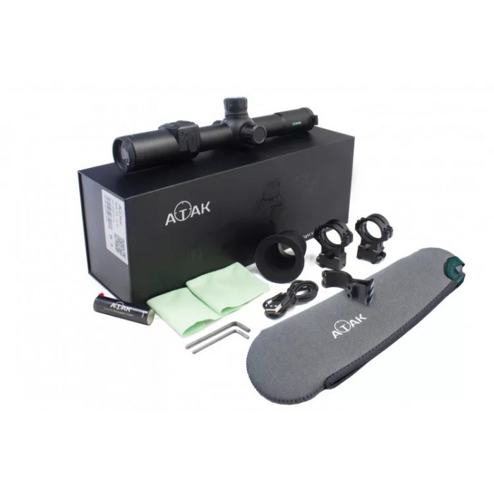 В комплект поставки входят прицел, кольца Ø30 мм для планки Picatinny, аккумулятор 18650, базовые пыле- и водозащитные крышки, салфетка и руководство пользователя. При необходимости можно использовать стандартные монтажные решения и дополнительное питание через внешний источник.