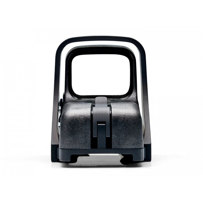 При использовании увеличителей точка сохраняет свой размер и не перекрывает цель, что повышает точность на дальних дистанциях. В отличие от стандартных коллиматоров с трубчатым корпусом, прямоугольное окно исключает «тоннельный эффект» и мертвые зоны, расширяя поле зрения.
