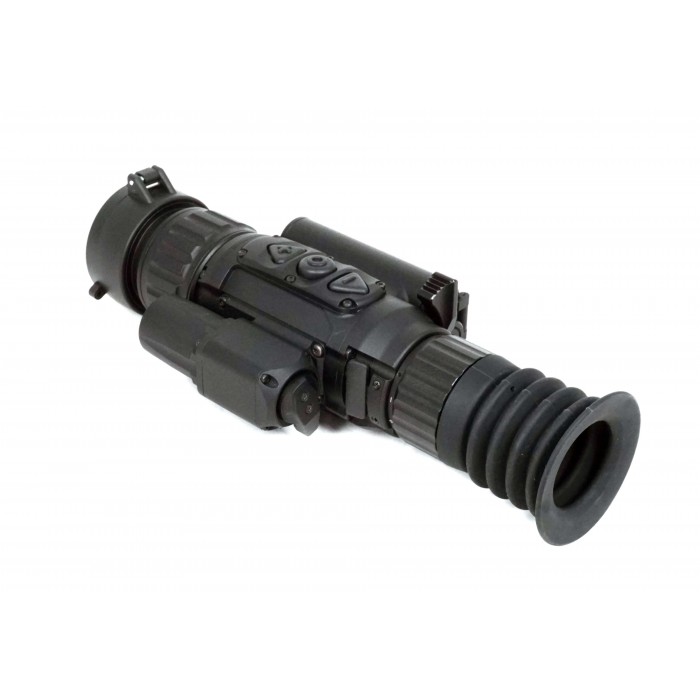 Встроенный дальномер с общей оптической осью излучателя и приемника позволяет точно измерять дистанцию до цели на расстоянии до 1500 метров без необходимости использования отдельного оборудования. Это существенно повышает точность стрельбы на дальних рубежах и ускоряет работу в динамичных ситуациях. Тепловизионное изображение формируется на базе чувствительного ИК-сенсора с разрешением 640×480 пикселей и размером пикселя 17 мкм при тепловой чувствительности менее 25 мК, благодаря чему прибор уверенно различает минимальные температурные контрасты и сохраняет высокую детализацию даже в тумане, дыме или осадках в спектральном диапазоне 7,5–14 мкм. Частота обновления 25 Гц обеспечивает плавность картинки при наблюдении движущихся объектов.