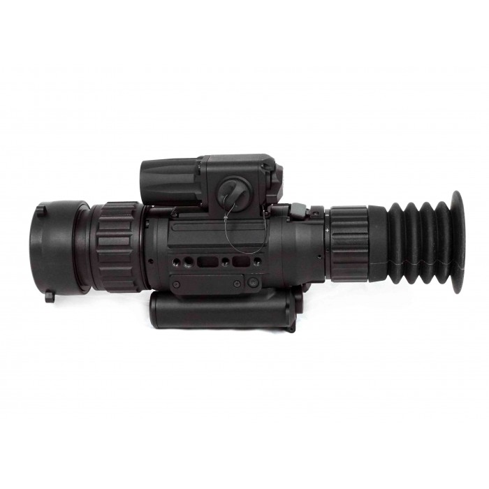 Габариты прибора составляют 222×105×62 мм, вес с установленными аккумуляторами — около 860 г, что делает его сбалансированным по массе и удобным для длительного использования. Дальность обнаружения ростовой фигуры достигает примерно 1800 метров, обеспечивая уверенное наблюдение на значительных дистанциях и расширяя рабочие возможности прицела в любых условиях освещения.