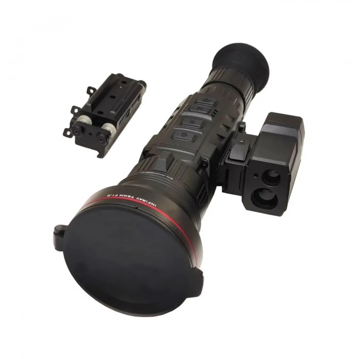 Объектив 75 мм обеспечивает базовое оптическое увеличение 16× и формирует сбалансированное поле зрения, а цифровой зум расширяет возможности детального наблюдения на дальних дистанциях. Встроенный лазерный дальномер позволяет измерять расстояние до цели на дистанции до 1200 метров, что упрощает оценку обстановки и работу на удалении.