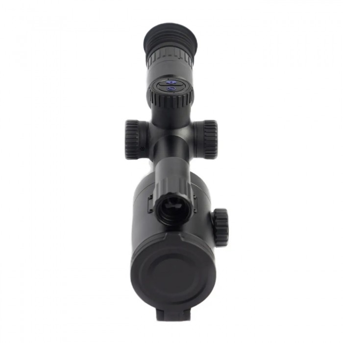 Прицел поддерживает автономную работу до 14 часов благодаря использованию двух аккумуляторов формата 18500/18650, а возможность подключения внешнего питания через Type-C позволяет продлить время эксплуатации при необходимости. Встроенная память объёмом 32 ГБ предназначена для записи фото и видео, а функции Wi-Fi, видеовыхода и записи обеспечивают передачу изображения на внешние устройства и сохранение наблюдений для последующего анализа. Дальность обнаружения достигает 2600 м, а встроенный лазерный дальномер с диапазоном измерения до 1200 м помогает точно оценивать расстояние до цели.