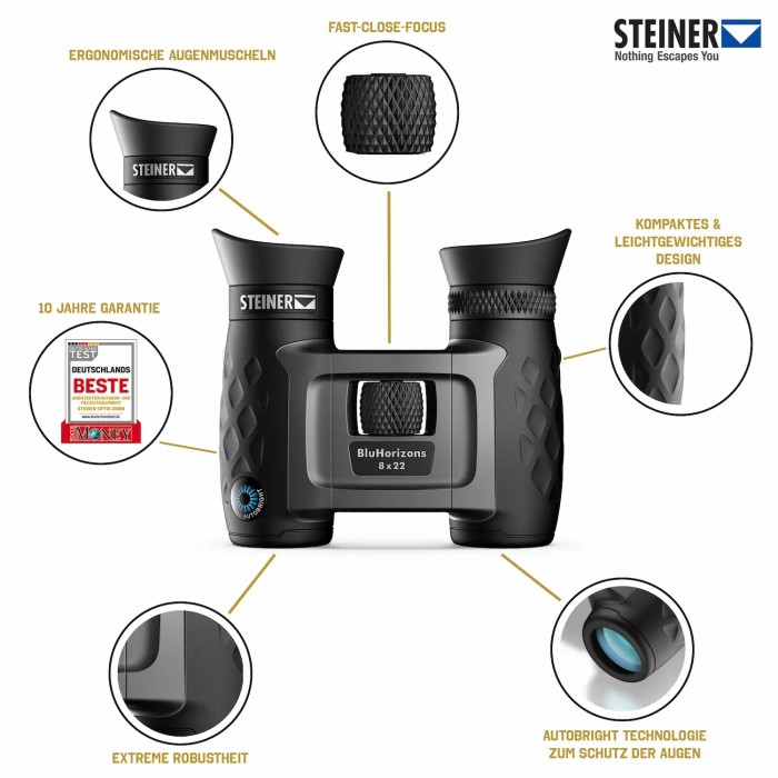 Дополнительную информацию по характеристикам, особенностям настройки и эксплуатации Steiner BluHorizons 8x22 можно найти на официальном сайте производителя. Так же рекомендуем ознакомиться с видео обзорами данной модели, где наглядно показан принцип работы и эффективность устройства. Жителей Москвы мы приглашаем в наш фирменный магазин оптики. Вы сможете в живую рассмотреть понравившиеся модели, сравнить их и получить профессиональную консультацию. Будем рады вашему визиту.
