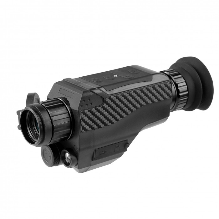 Изображение выводится на встроенный IPS LCD-дисплей диагональю 1,54 дюйма, обеспечивающий стабильную цветопередачу и комфортное восприятие картинки. Инфракрасный осветитель с длиной волны 850 нм и мощностью 3 Вт позволяет обнаруживать объекты на расстоянии до 200 метров в полной темноте. Электронная система обработки изображения поддерживает фото- и видеосъёмку, а также воспроизведение записанных материалов непосредственно на устройстве.