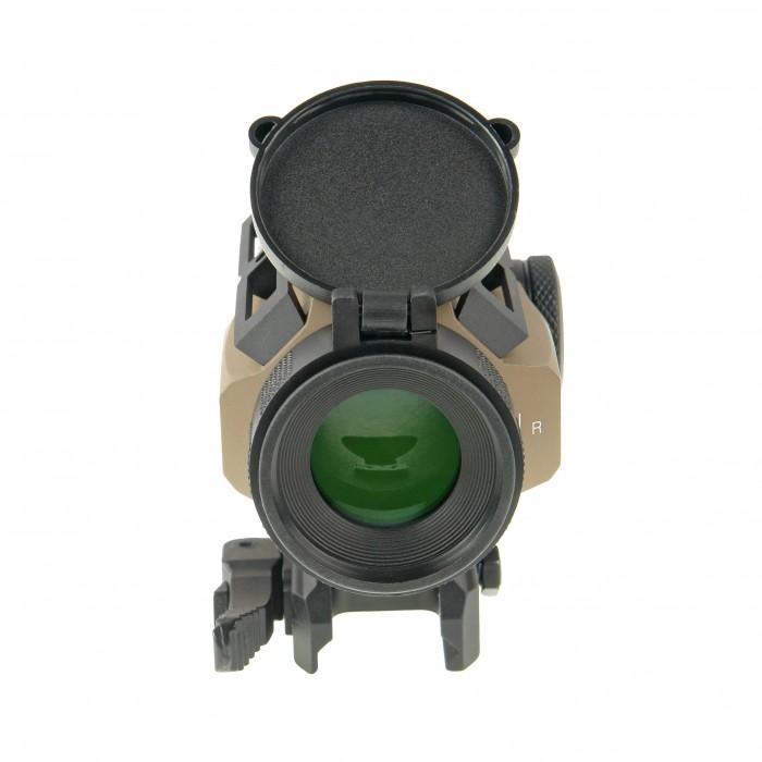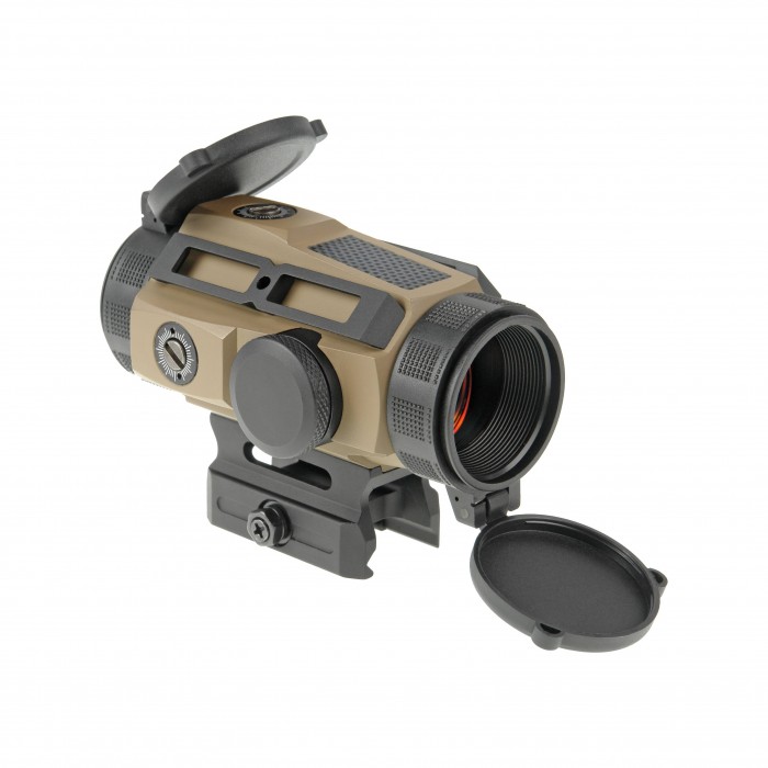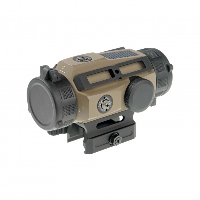 Модель оснащена быстросъёмным креплением на планку Weaver длиной от 50 мм, позволяющим быстро установить или снять оптику без инструмента. Такое решение удобно при использовании одного прицела на нескольких единицах оружия. Корпус выполнен из алюминиевого сплава и рассчитан на эксплуатацию в диапазоне температур от −25 до +40 °C. Герметичная конструкция защищает внутренние элементы от дождя и пыли, а защитные крышки предотвращают повреждение линз при транспортировке и хранении. Компактные размеры и умеренный вес делают устройство удобным для длительного использования без заметного увеличения массы оружия.