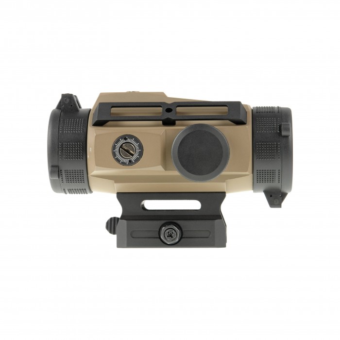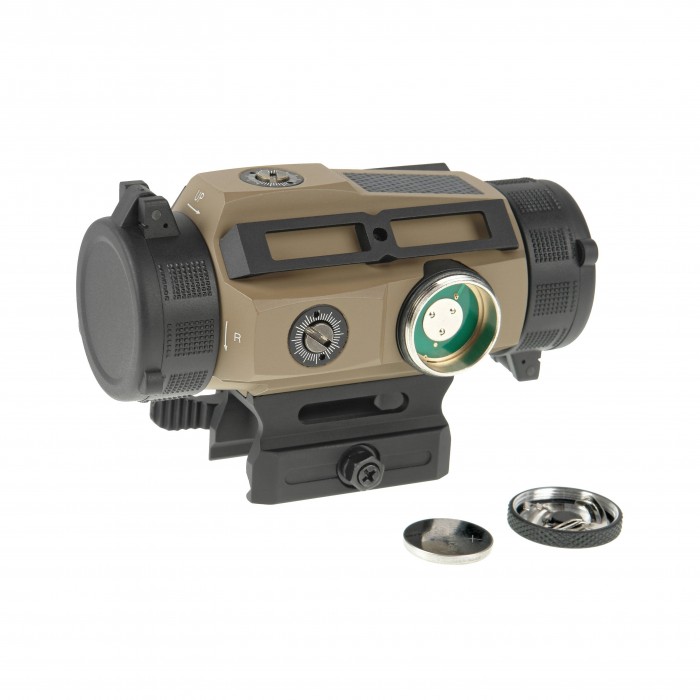 Прибор оснащён системой смены прицельных марок, позволяющей выбрать наиболее удобный вариант в зависимости от задачи. Доступны два типа красной марки: точка 2 МОА для аккуратного прицеливания и окружность 30 МОА с центральной точкой 2 МОА для быстрого захвата цели на коротких дистанциях. Яркость подсветки регулируется вручную на семи уровнях либо автоматически. При достаточном освещении питание осуществляется от солнечной панели, а при его снижении автоматически активируется резервное питание от батареи CR2032, установленной в боковом отсеке корпуса.