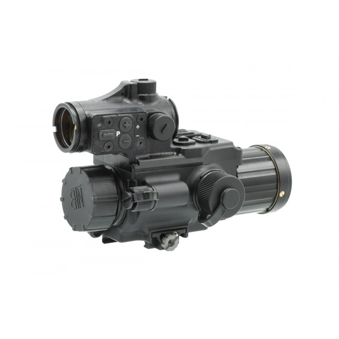- Микродисплей с разрешением 1024×768 обеспечивает чёткое отображение тепловой сцены и прицельной информации