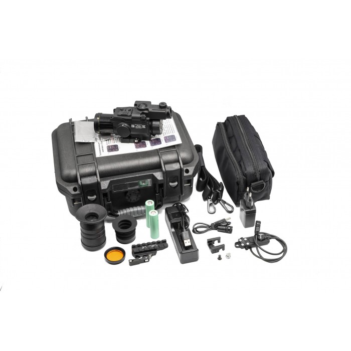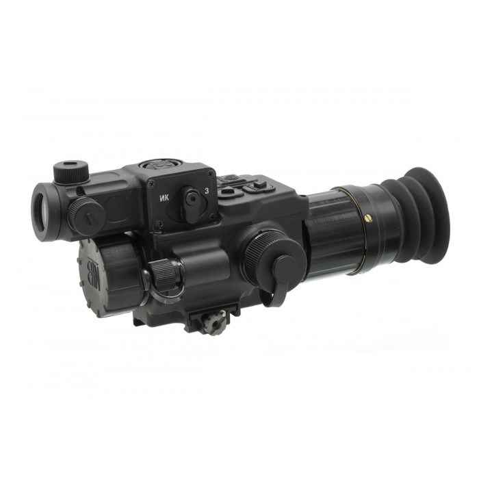 В основе работы используется болометрическая матрица с шагом пикселя 12 мкм и разрешением 640 × 512, обеспечивающая стабильную детализацию теплового изображения. Частота обновления кадров до 60 Гц формирует плавную картинку при наблюдении за движущимися объектами, а температурная чувствительность сенсора более 40 mK позволяет фиксировать слабые температурные различия. Микродисплей с разрешением 1024 × 768 передаёт изображение с достаточной чёткостью для уверенного распознавания целей и комфортного наблюдения в течение длительного времени.