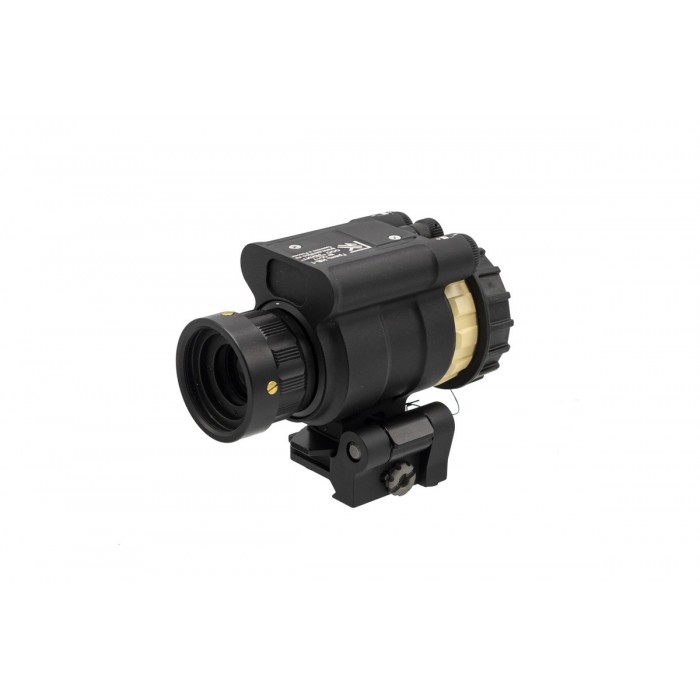 Модель использует электронно-оптический преобразователь поколения II+ с зелёным изображением, обеспечивающим комфортное восприятие сцены при длительном наблюдении. Питание осуществляется от двух элементов AAA, одного комплекта достаточно примерно на 48 часов непрерывной работы при стандартных условиях эксплуатации. Оптическая схема с увеличением 1× сохраняет естественное поле зрения без изменения масштаба, что облегчает ориентацию в пространстве и снижает нагрузку на зрение. Фокусное расстояние окуляра превышает 20 мм, предусмотрена диоптрийная корректировка в диапазоне от −5 до +2, позволяющая адаптировать изображение под особенности зрения пользователя. Линзы выполнены из оптического стекла, обеспечивающего стабильную передачу изображения и устойчивость к температурным изменениям.