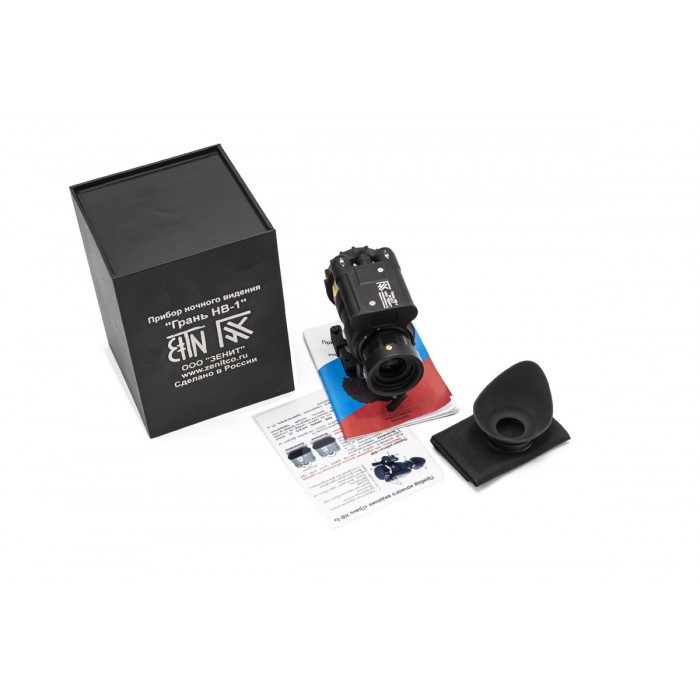 Прибор ночного видения «Грань НВ-1» представляет собой компактный монокуляр с увеличением 1×, предназначенный для наблюдения в тёмное время суток и при слабом естественном освещении. Устройство может использоваться как ручной наблюдательный прибор, а также устанавливаться на оружие или шлем в зависимости от задач пользователя. Конструкция допускает совместное применение с коллиматорными прицелами серии «Взор», что позволяет использовать оптику в составе комплексных прицельных решений без изменения привычной эргономики. Быстросъёмное крепление обеспечивает установку на планку Пикатинни и позволяет оперативно снять прибор при необходимости. Монтаж на шлем осуществляется при помощи отдельного кронштейна крепления тепловизора, приобретаемого отдельно.
