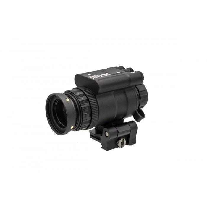 Корпус выполнен из алюминиевого сплава Д16Т, сочетающего прочность и малый вес. Габариты устройства не превышают 110×65×47 мм, масса составляет до 285 г, что делает прибор удобным для длительного использования как на оружии, так и при ношении на шлеме. Конструкция рассчитана на эксплуатацию в широком диапазоне температур: рабочие условия от −30 °C до +60 °C, хранение допускается при температурах от −40 °C до +70 °C. Уровень влагозащиты IP67 и устойчивость к влажности до 95% позволяют использовать оптику в сложных погодных условиях.